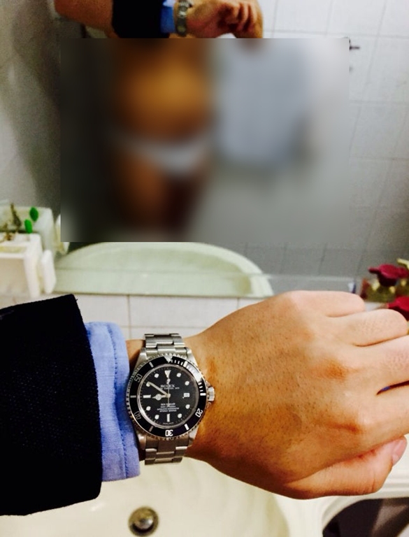 출근 준비하면서 찍었다고 하는데, 거울을 보면 빤쓰만 입고, 소매랑 시계만 찼다