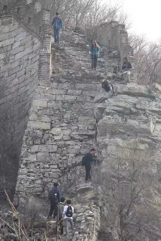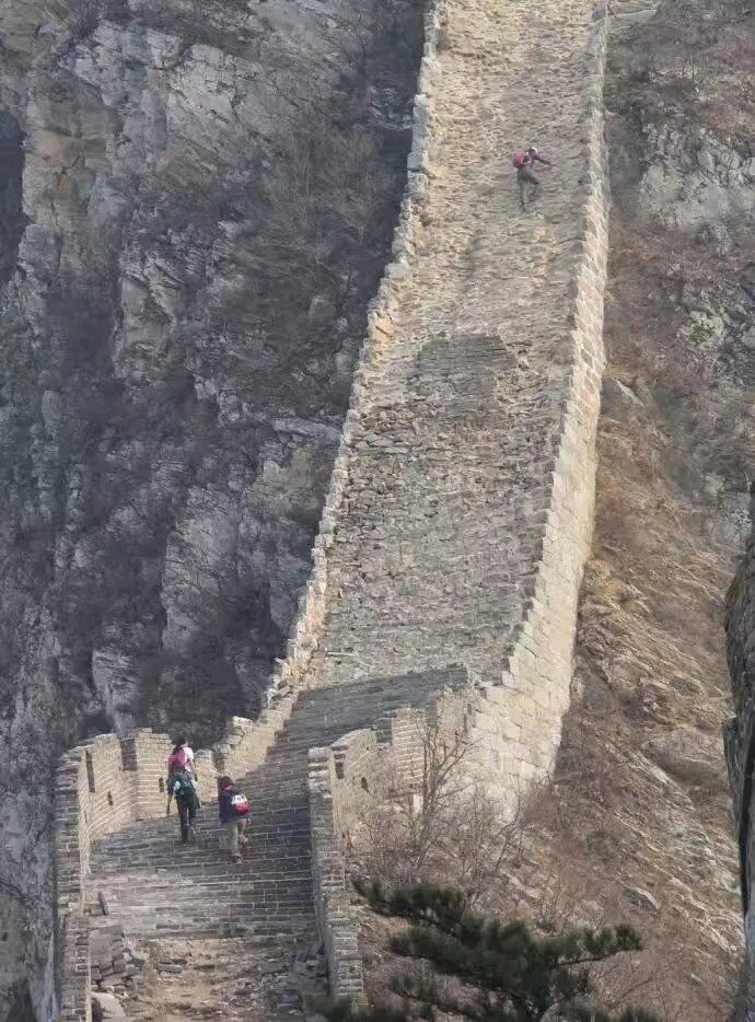 만리장성은 평평한 길을 따라 난 것이 아니라 산이 있다면 이 산을 타고 올라가는 등 지형을 망가뜨리지 않고 그대로 건축을 해 이렇게 깎아지는 절벽과 같은 구간이 있다고 합니다. 정말 대단하네요.