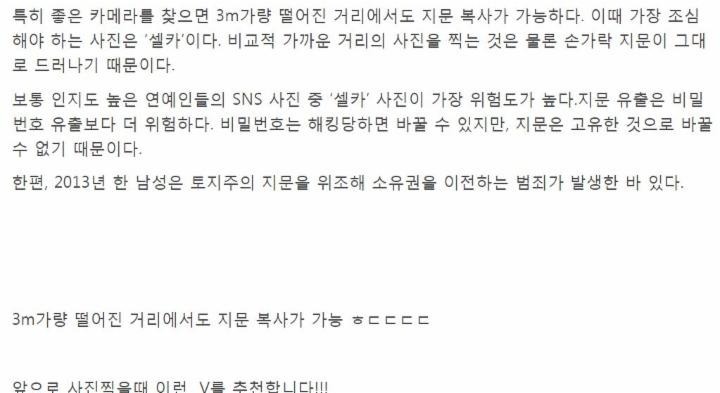 게다가 SNS 등을 통하여 사진을 공유하는 현재의 추세 역시 불특정 다수에게 지문을 노출 시키는 행위이니 특히 조심해야 한다고 당부했다.
