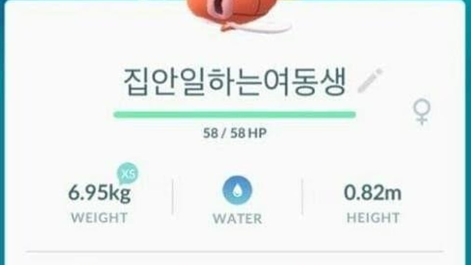 게임 포켓몬고의 유저 중 한명이 자신이 잡은 포켓몬을 여동생의 모습에