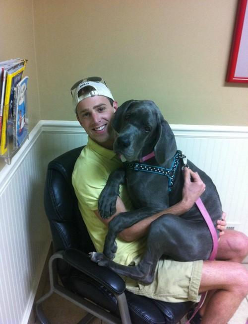 몸은 사람만큼 큰 편에 속하지만 아기 강아지처럼 주인에 품에 안겨있는 모습이 인상적이다.