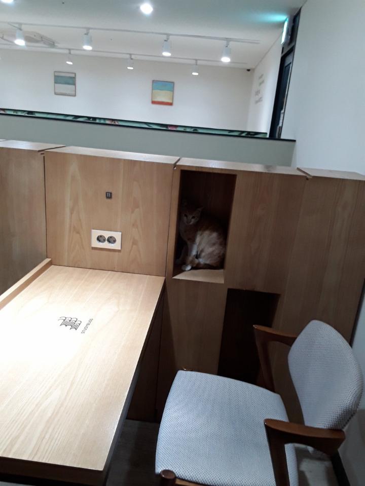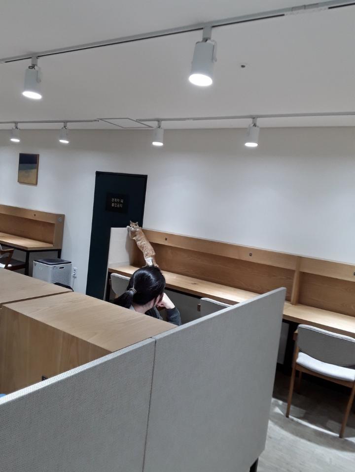지하 1층에 위치한 한 스터디 카페에서 천장에서 고양이가 떨어져 화제가 되고 있다.