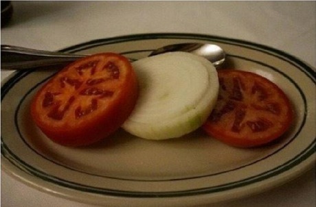 이 메뉴는 울프강 스테이크 하우스에서 판매하는 슬라이스드 점보 토마토와 어니언이라는 메뉴로 가격이 무려 14000원입니다. 고스의 가격도 아닌 단품의 가격이고 양념도 조리도 없이 토마토와 생 양파를 슬라이스하는 것이 고작이라고 합니다.
