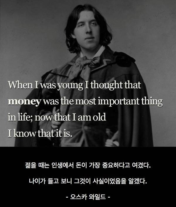 젊을 때 돈이 가장 중요하다고 생각했고 나이가 들고 보니 그것이 사실이었다고 말하는 오스카 와일드.
