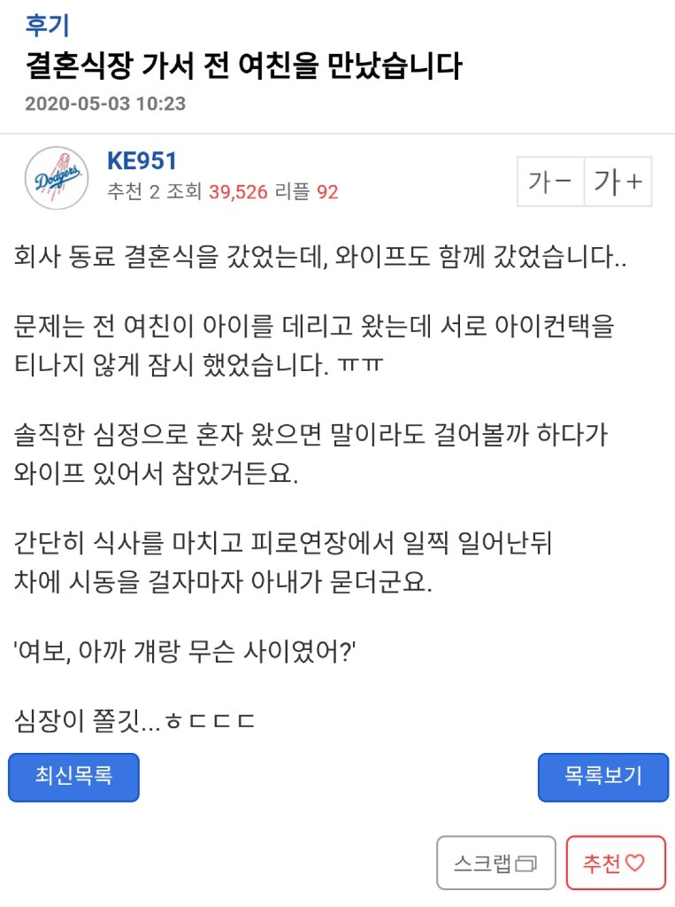 최근 친구의 결혼식장에서 전여친을 만난 남자의 글이 화제가 되고 있습니다.