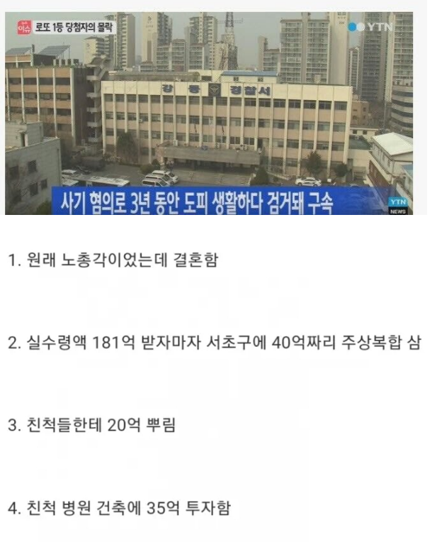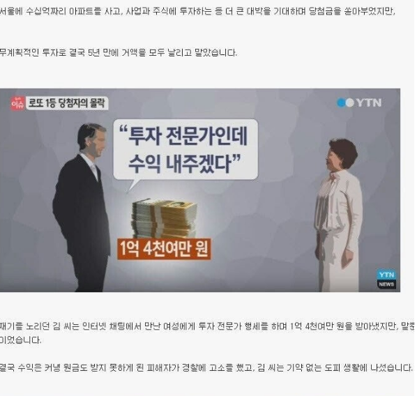 이를 본 누리꾼들은 "로또 당첨 사실을 친척이 알았다는 시점에서 몰락이 확정된 것" "그냥 사람 자체가 좀 멍청했네" 등의 반응을 보였습니다.