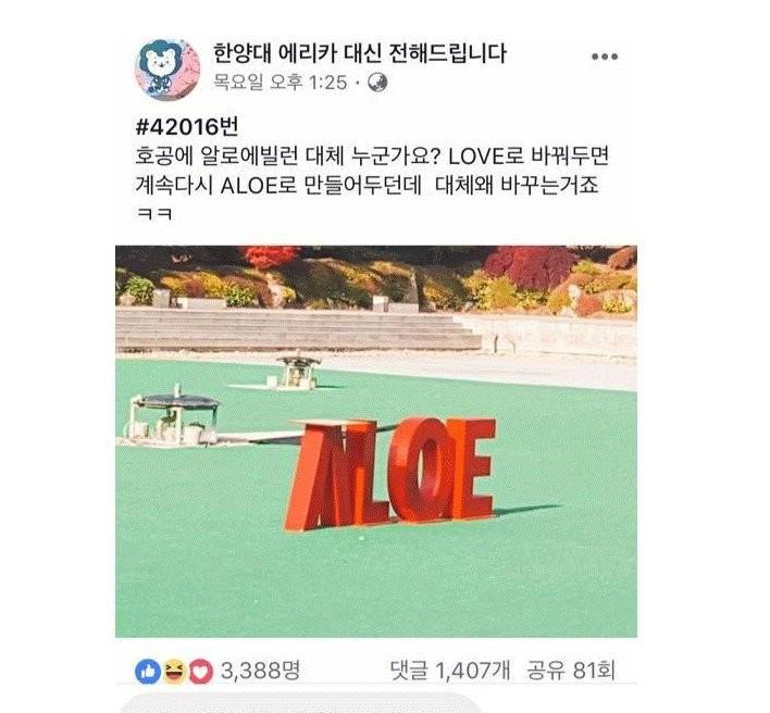 한양대 에리카 캠퍼스에 있는 LOVE 조형물을 바꾸는 사람이 있다고 한다.